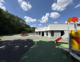 Le site du groupe scolaire des Cornouillers construit en 1976 était le lieu idéal pour recevoir cet équipement de proximité, car situé au cœur d’un quartier. La construction de ce bâtiment était également incluse dans une réflexion d’ensemble sur le groupe scolaire lui-même, sa construction permettant de libérer des espaces scolaires nécessaires à l’augmentation des effectifs. Le nouveau bâtiment implanté sur un site au relief marqué a permis de proposer une salle multisports en rez de cour, et en rez de chaussée un accueil de loisirs. Pour cette opération, Terres et Toits s’est chargé de la consultation de l’équipe de maitrise d’œuvre, du montage financier complexe lié au phasage en lien avec les travaux de l’école, de la préparation et du suivi des subventions, du suivi des études, de la préparation et de la mise en ligne de la consultation des entreprises et du suivi administratif de chantier jusqu’à réception, le tout dans le cadre des marchés publics.