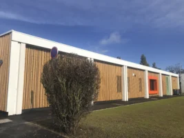 L’école Les Lions de Beaubourg est un bâtiment construit en 1973 selon les normes de l’époque qui aujourd’hui nécessitait une rénovation complète : résolution de désordres structurels, de problèmes de fuites, d’accessibilité, de sécurité, de ventilation des locaux, nécessité d’un désamiantage et d’une rénovation énergétique globale. Le tout en assurant le fonctionnement de l’établissement par la mise en place d’une école provisoire de 6 classes en modulaires.